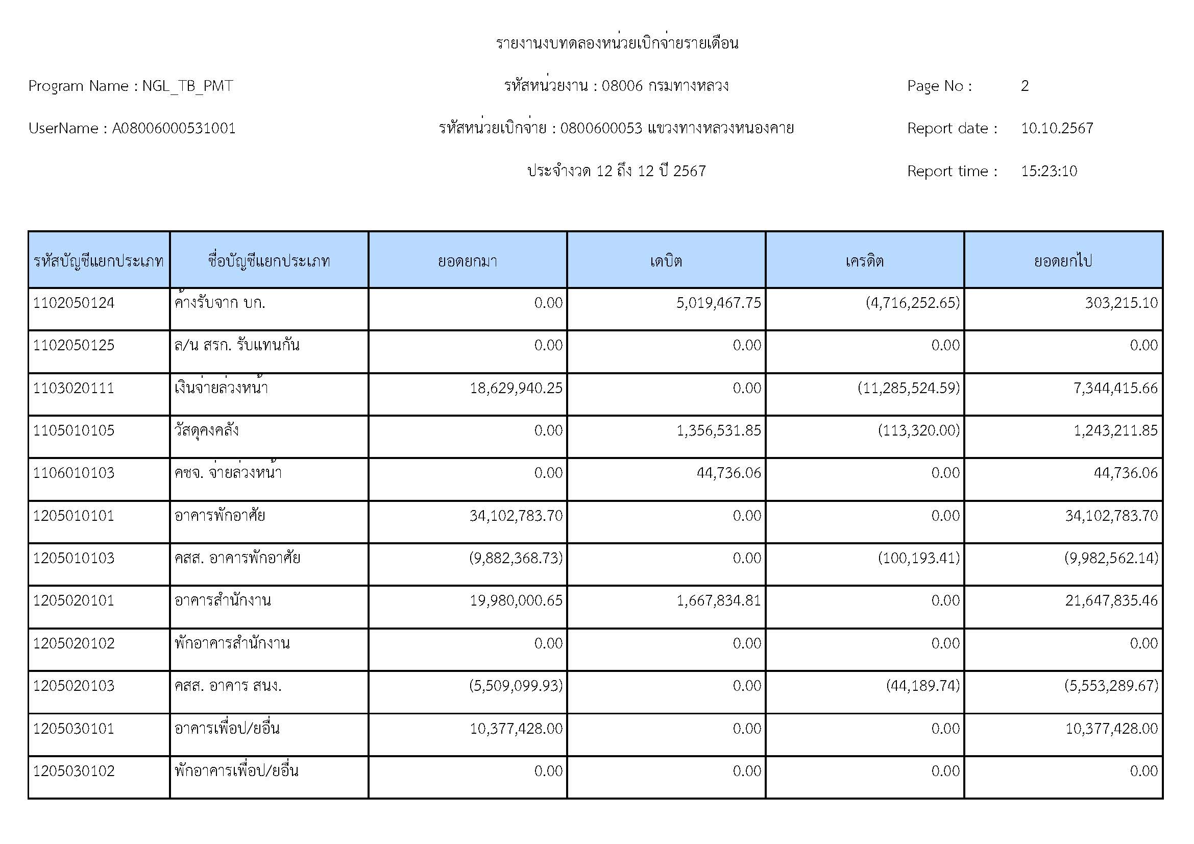 ส่งรายงานงบทดลองประจำเดือน กันยายน 2567