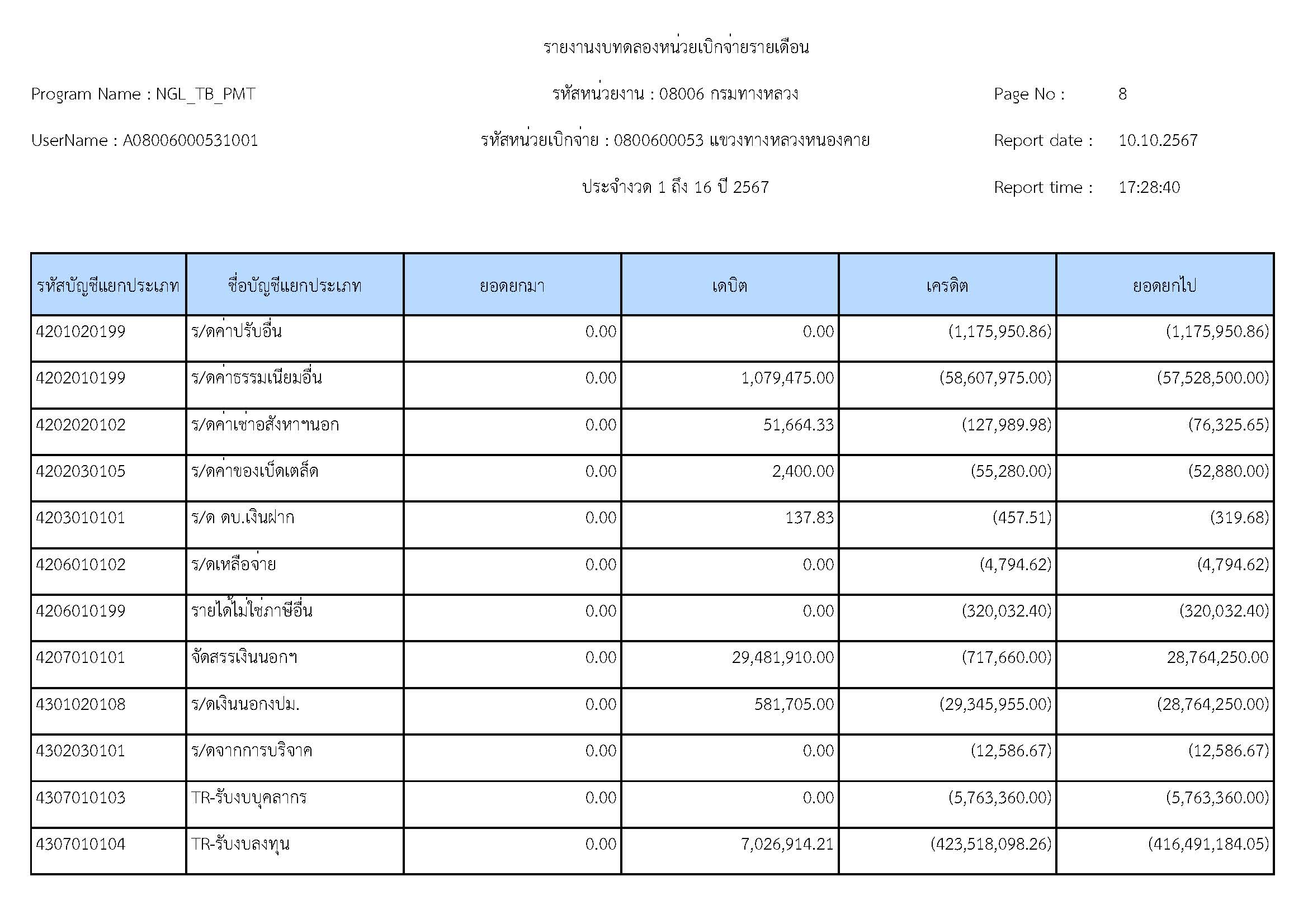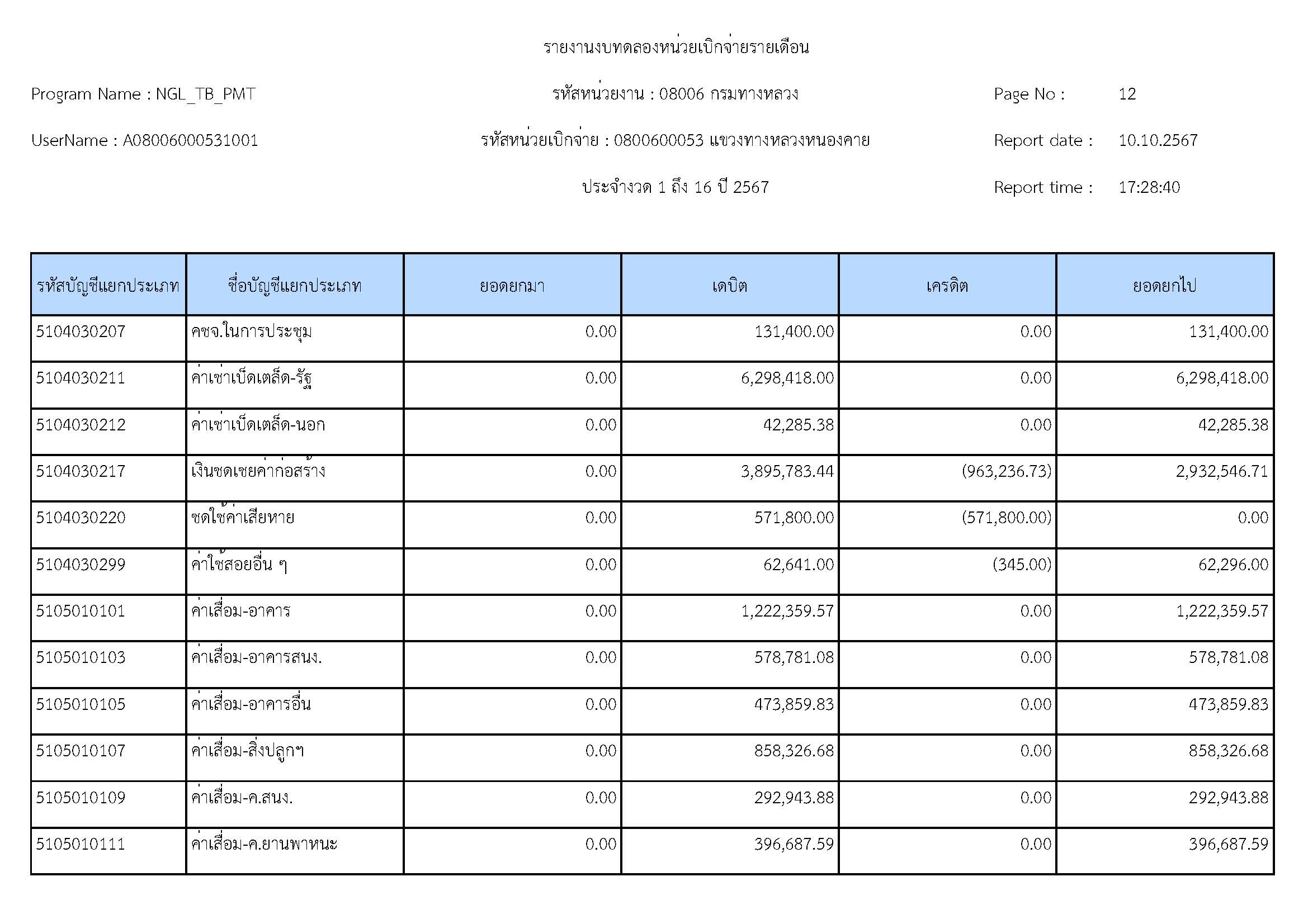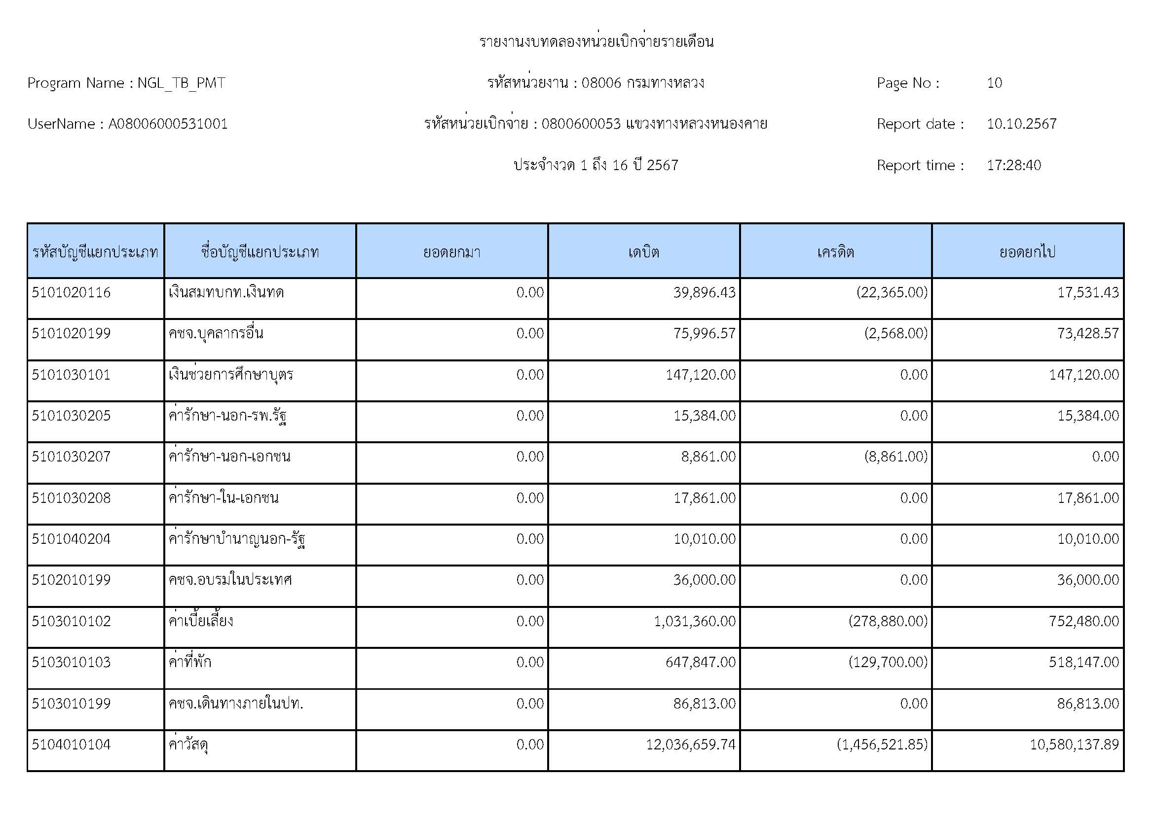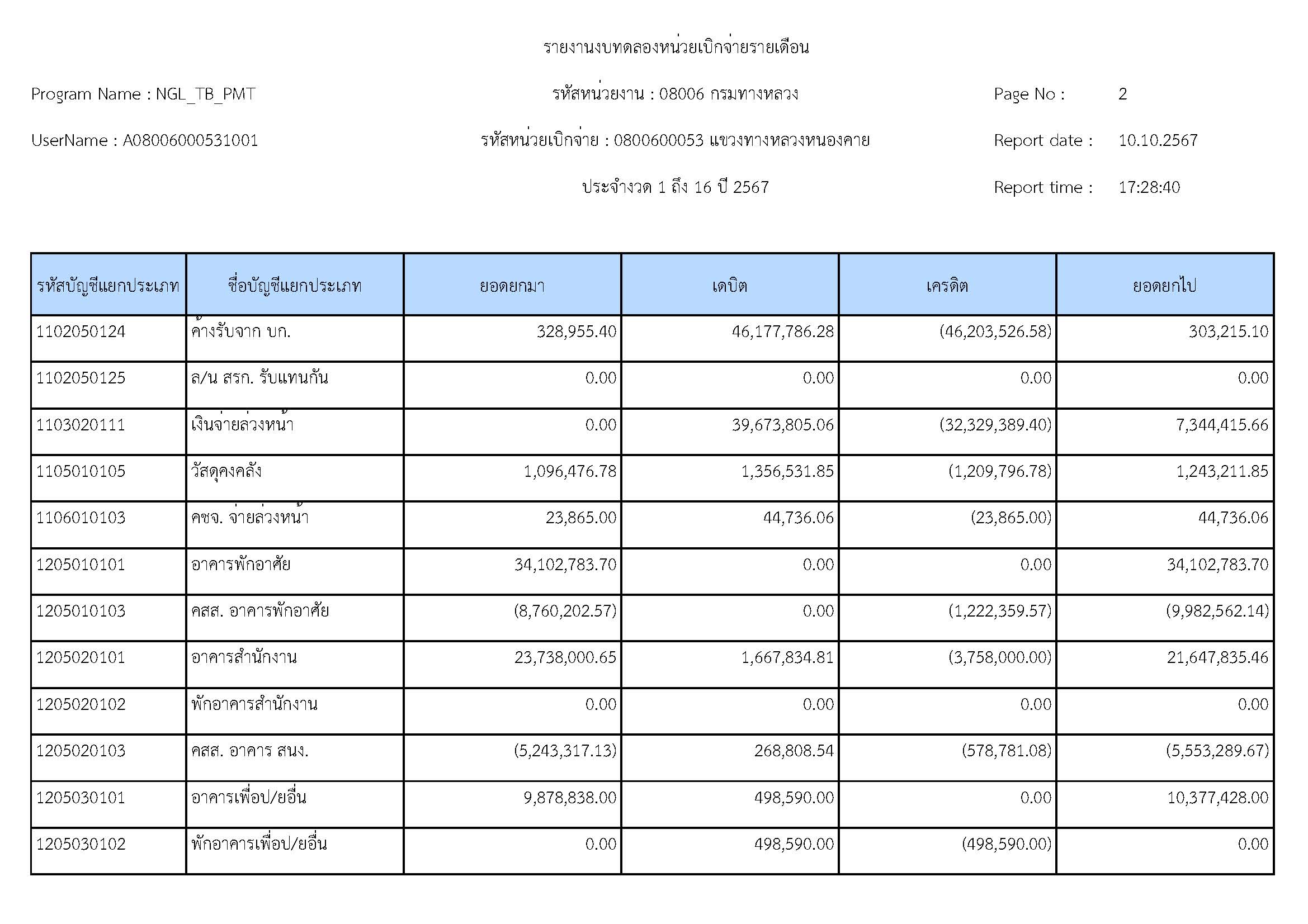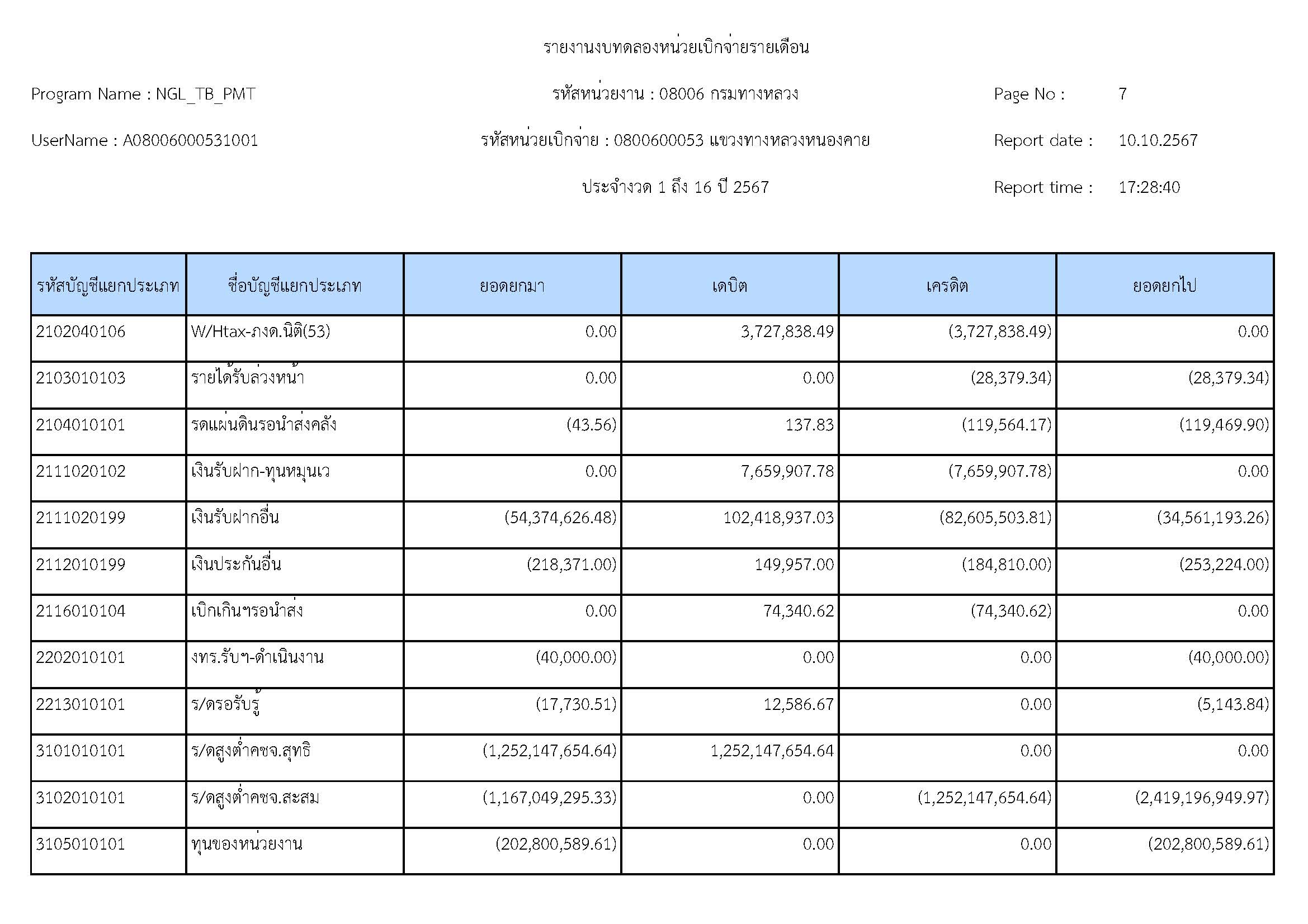 รายละเอียดประกอบงบทดลอง ประจำปีงบประมาณ 2567