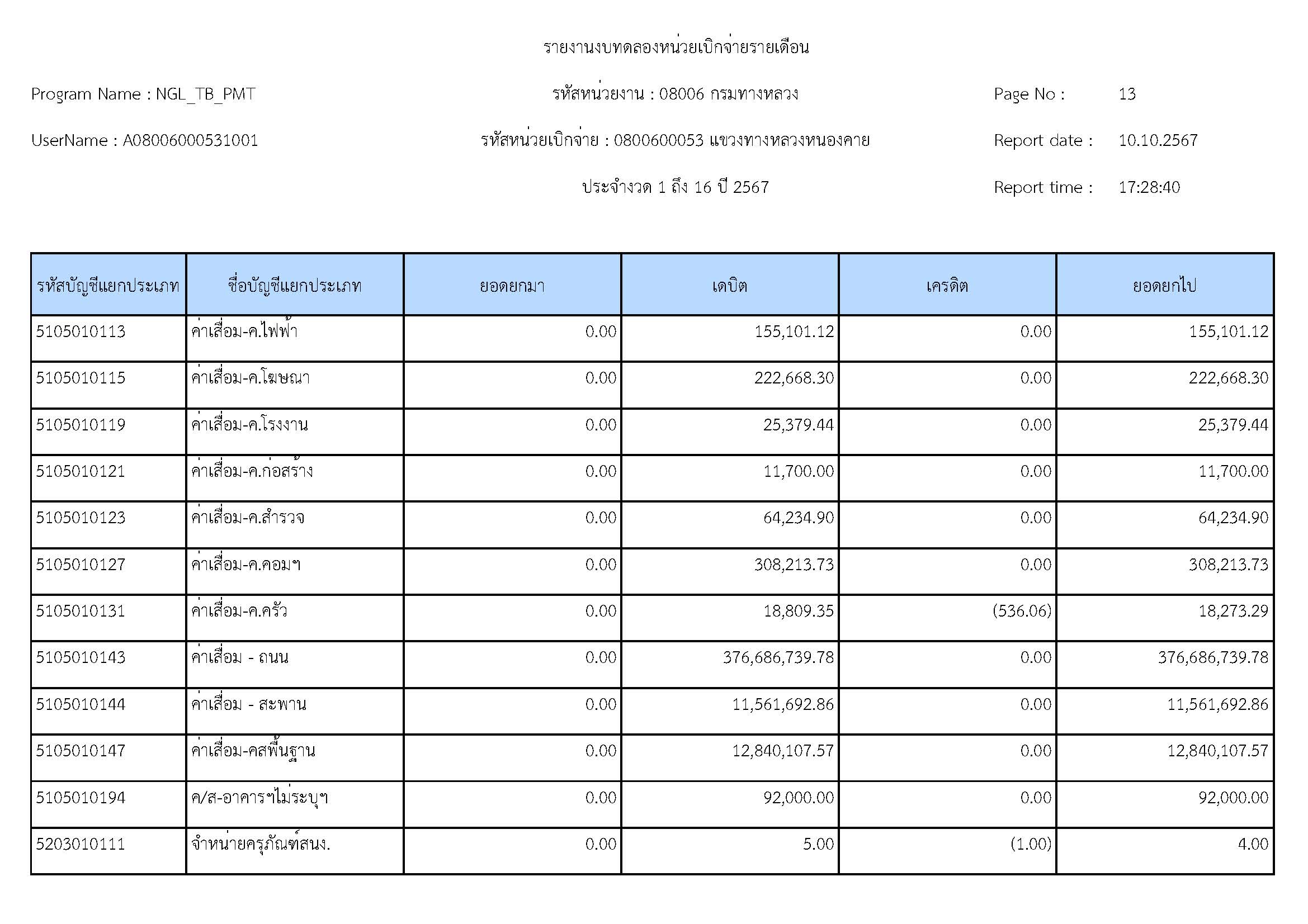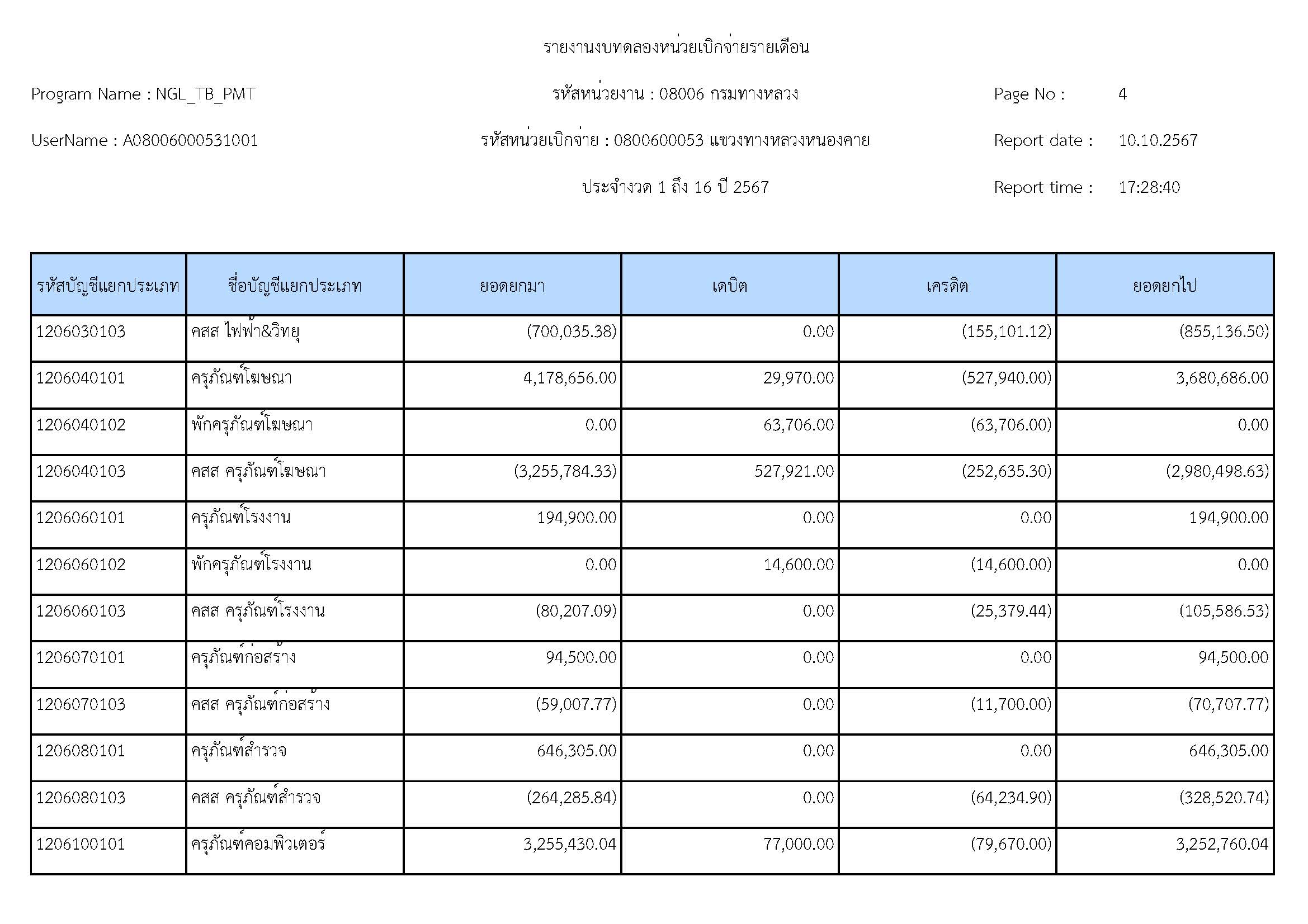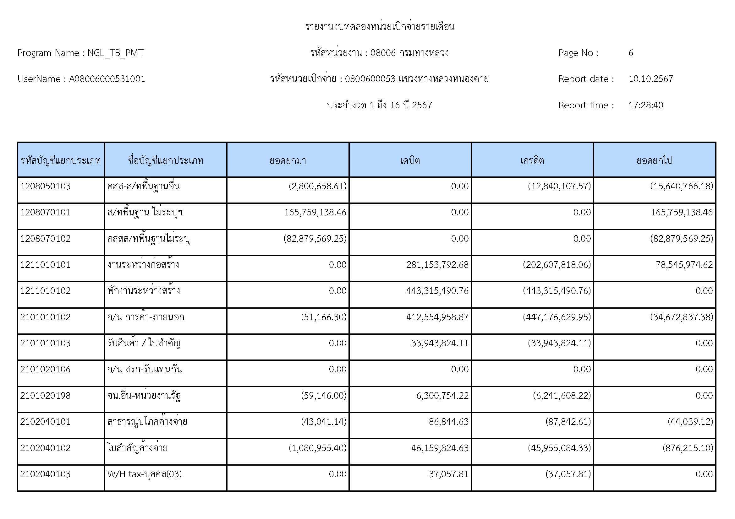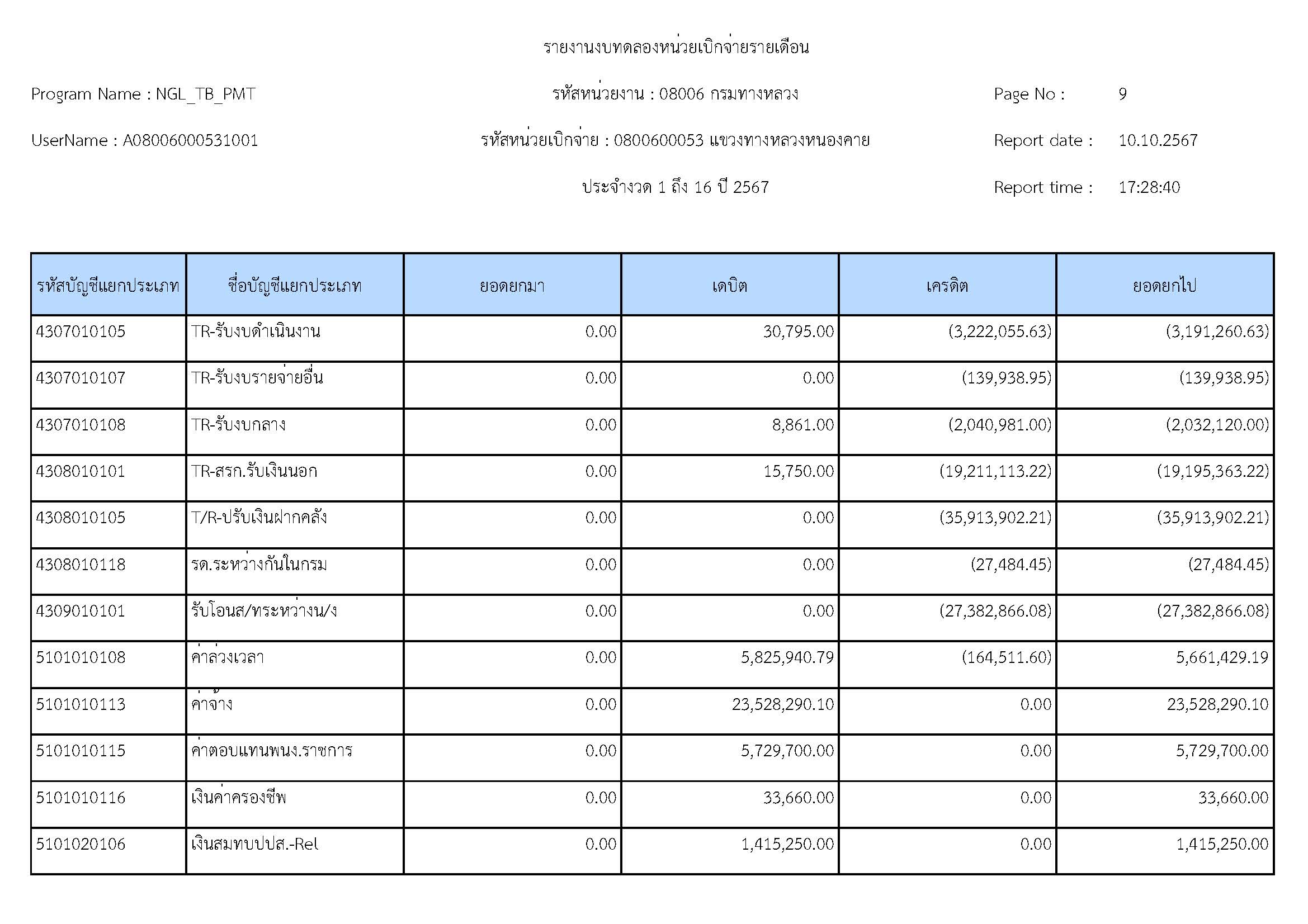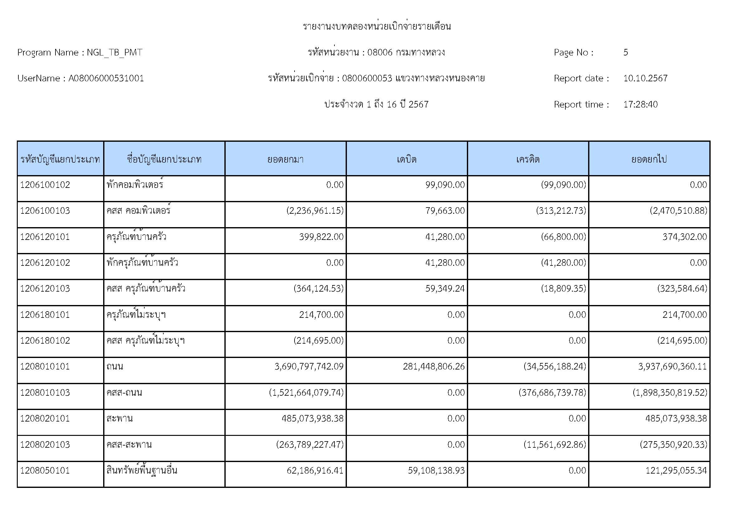 รายละเอียดประกอบงบทดลอง ประจำปีงบประมาณ 2567