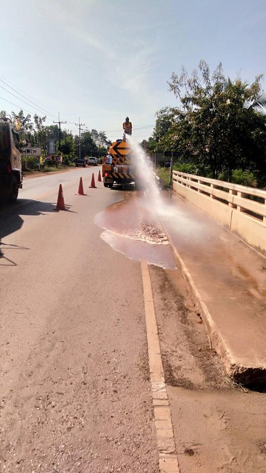 วันที่ 14 กุมภาพันธ์ 2562 หมวดทางหลวงโพนพิสัย ดำเนินการ ล้างทำความสะอาดผิวทาง ทล.2230 กม.3+144-16+000 ปริมาณงาน 5,000 ตร.ม.