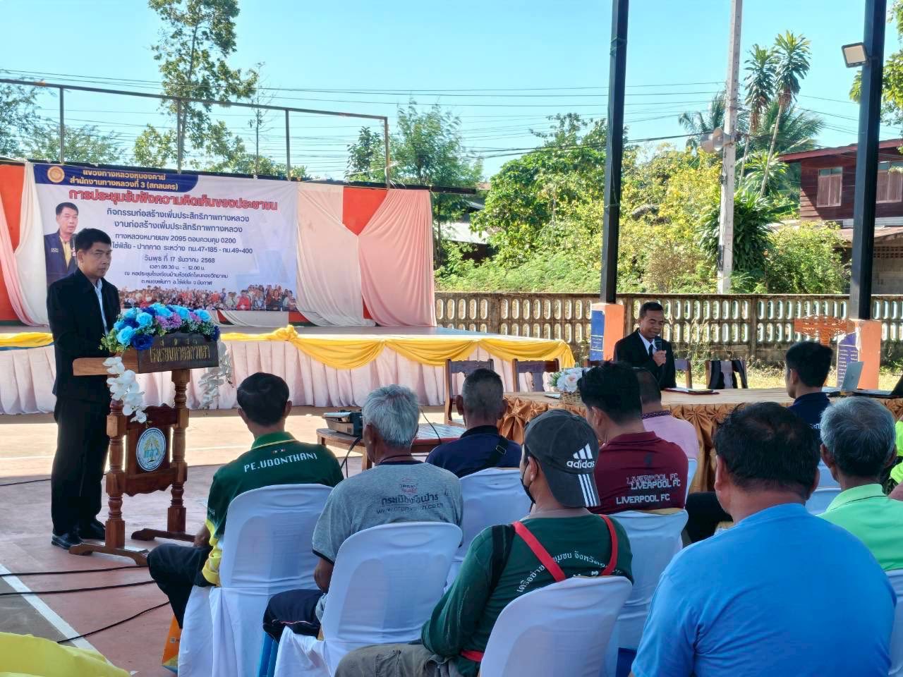 วันที่ 17 ธันวาคม 2568 เวลา 08.30 น. ณ หอประชุมโรงเรียนบ้านห้วยลึก อำเภอโซ่พิสัย จังหวัดบึงกาฬ นายมนูญ ชูตรี ผู้อำนวยการแขวงทางหลวงหนองคาย กำหนดจัดประชุมโครงการการมีส่วนร่วมของประชาชนประจำปีงบประมาณ 2569 โครงการก่อสร้างบริเวณทางหลวงหมายเลข 2095 ตอน โซ่พิสัย-ปากคาด ระหว่าง กม. 47+ 185 - กม. 49+ 400