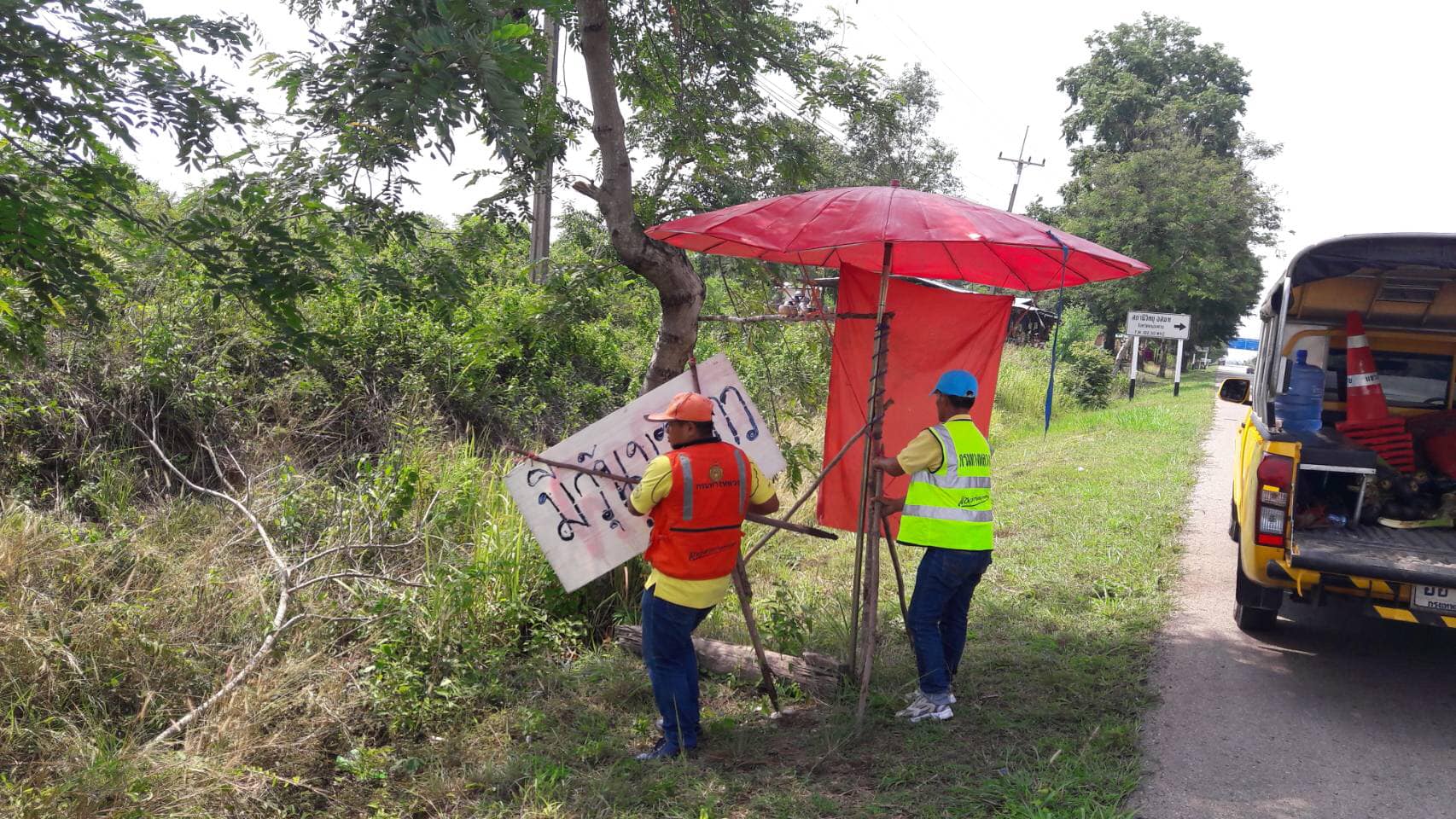 วันที่ 17 พฤษภาคม 2562 หมวดทางหลวงหนองคาย ดำเนินการแจ้งเตือนร้านค้าตั้งเพิงในเขตทางหลวงผิดกฎหมาย ในทล.2 กม.492+000 - กม.495+000 ปริมาณงาน 12 แห่ง