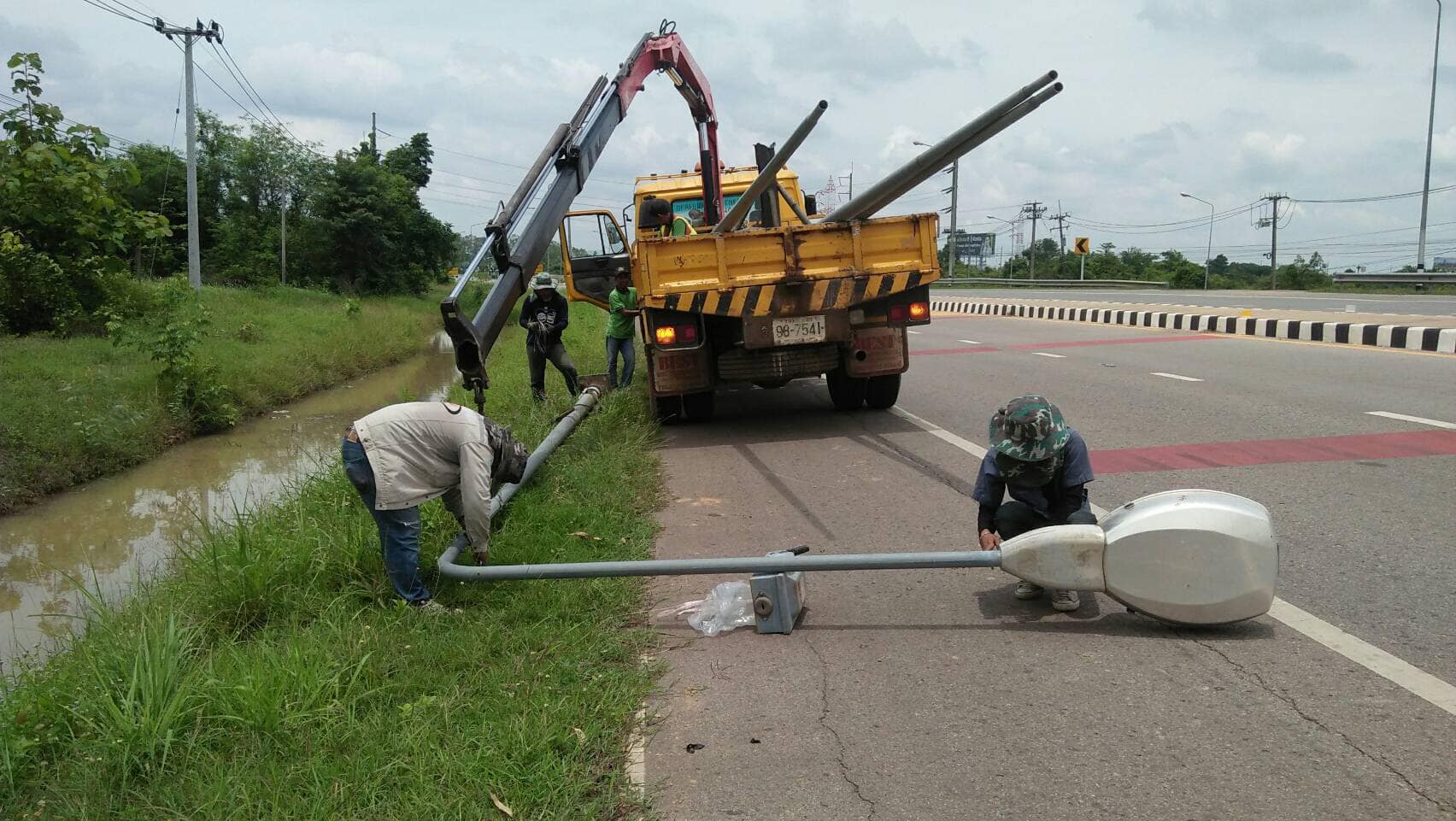 วันที่ 5 มิถุนายน 2562 งานอำนวยความปลอดภัย ดำเนินการ 1.งานซ่อมไฟฟ้าแสงสว่าง ทล.212 กม.24+000-24+300และ กม.90+000-91+0002.งานติดตั้งเสาไฟฟ้าแสงสว่าง ทล.2 กม.501+000-504+000 ปริมาณงาน 6 ต้น3.งานติดตั้งป้าย ทล.242 กม.1+000 - กม.1+500 ปริมาณงาน 2 ชุด